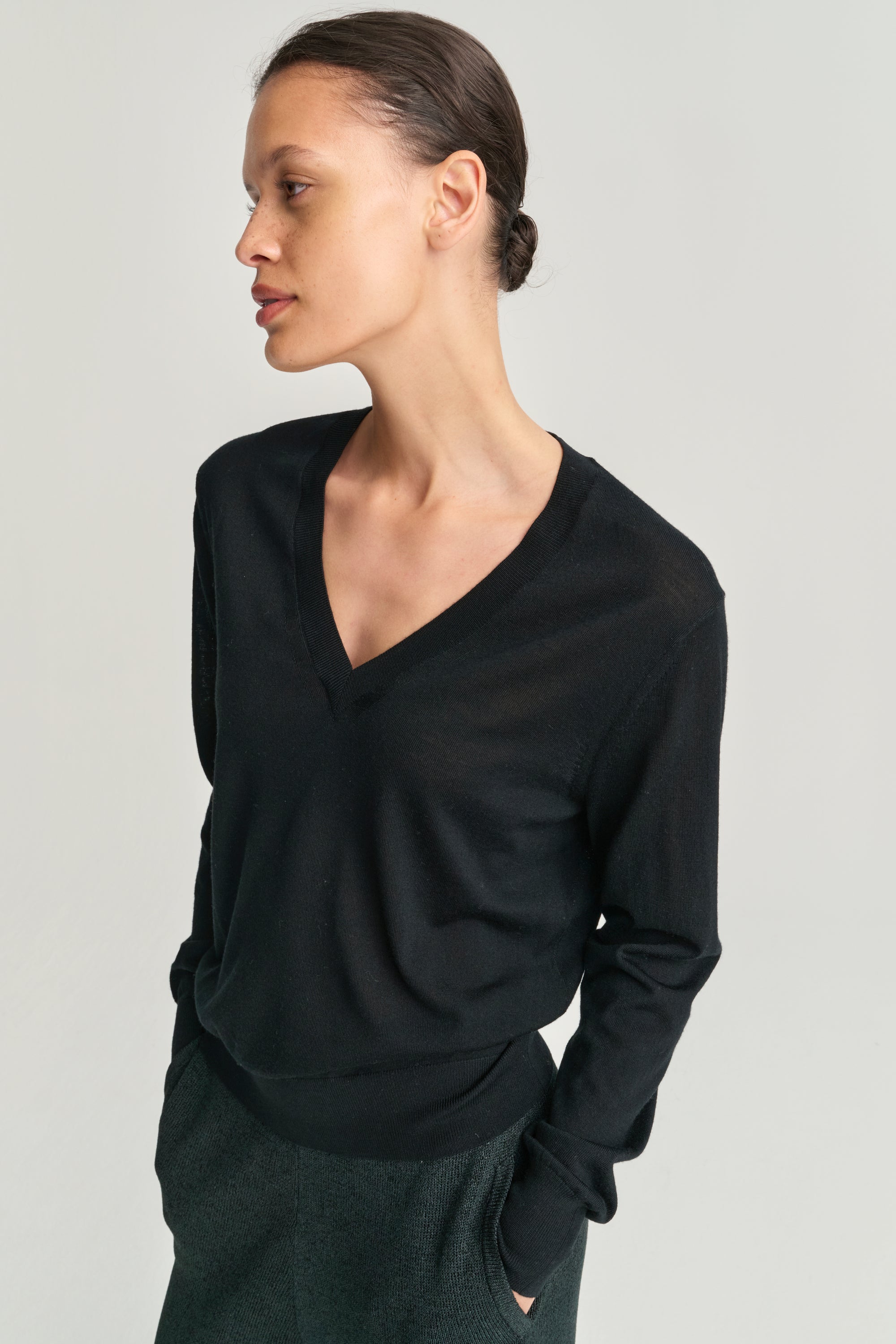 V Neck | Wool Cashmere | Black