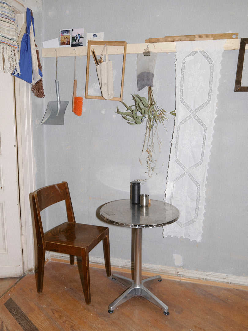Julia works with vintage and leftover textiles, mainly through patchwork. She started her practice in 2020/2021 with leftover fabrics from her mum’s old upholstery projects, building on her background as a trained tailor and her longtime interest in the field. She brings fabric fragments together, exploring the relationships between them and the new compositions they create. Her recent works include curtains, tablecloths, and different forms of cushions.